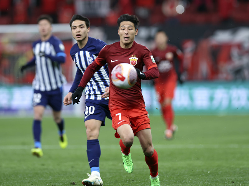 3月1日,上海海港队球员武磊(右)在比赛中。