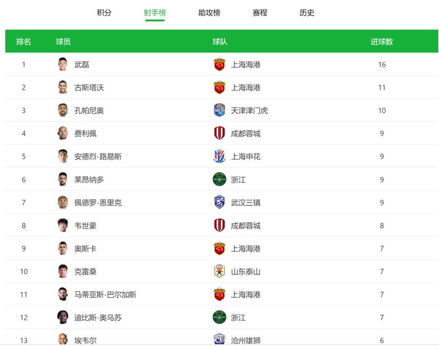 尽管受到伤病困扰而踢得略显疲惫,但武磊通过更简洁有效的球风,迎来了自己在15场联赛的第16个进球。中超上半程,武磊以领先队友古斯塔沃5球的优势,继续领跑中超射手榜。