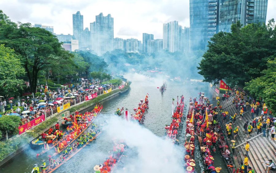 端午节划龙舟是岭南重要的文化习俗。 新华社 发