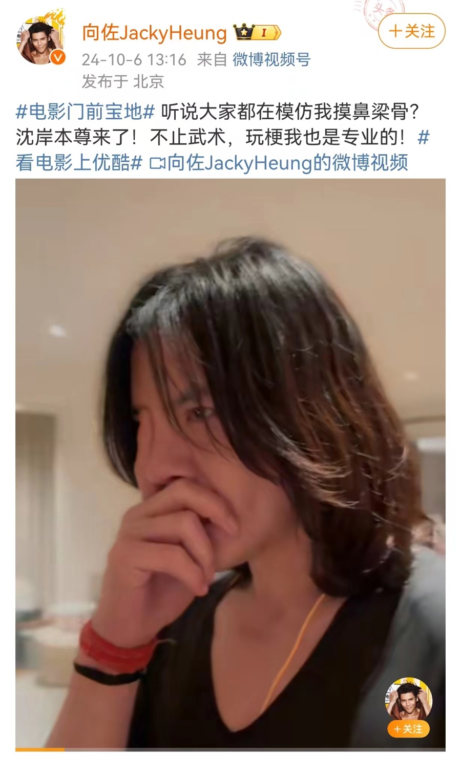 “向佐的鼻梁骨到底有谁在啊?”电影《门前宝地》中男主演向佐频繁举着手指紧贴鼻梁,装腔作势中又有些搞笑的动作引发大量网友二创模仿,功夫片被吐槽成了喜剧片。