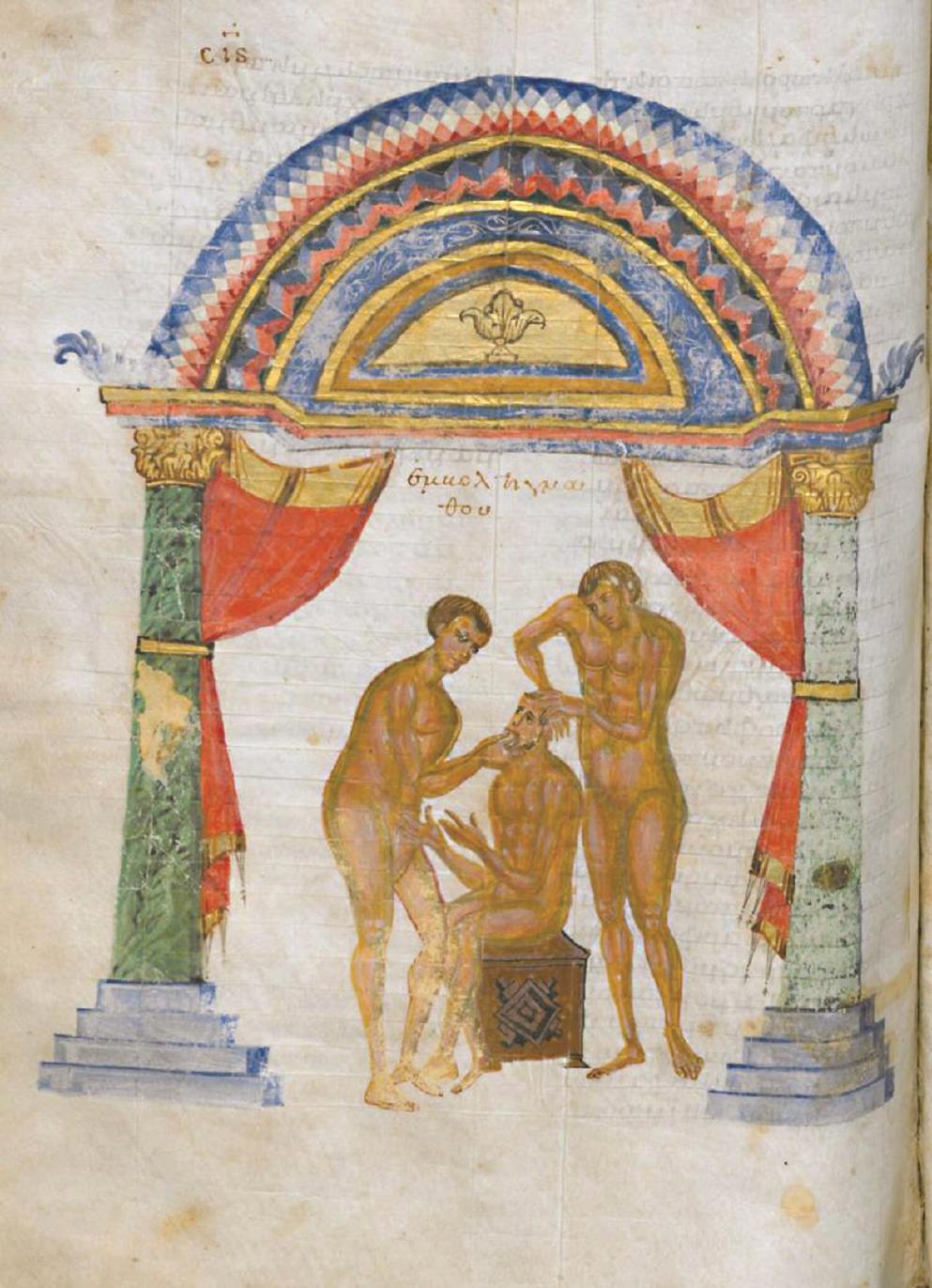 草本配方也不罕见。公元2世纪,《金驴记》的作者阿普列尤斯被指控使用巫术,证据之一便是他提供的一款由阿拉伯香料制成的牙粉(《辩护状》)。奥古斯都的姐姐小奥克塔薇娅尤其喜欢一款材料简单的配方:将500毫升大麦粉与醋、蜂蜜混合,揉搓成六等分的小球,混合半盎司的盐放入炉子烘烤成炭黑状,使用时混合甘松油摩擦牙齿(克里波尼乌斯·拉尔古斯)。