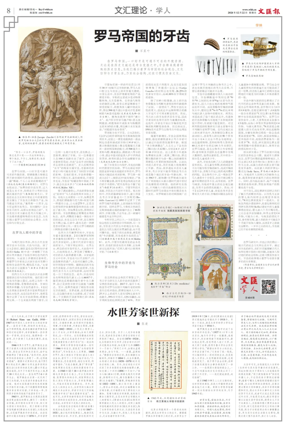 但西方古人对牙齿的认识也杂糅着错误总结与坊间传闻。他们很少将牙齿当作独立器官,而将之当作一类特殊的骨骼,是颚骨的延伸。牙神经则类似骨髓,为牙齿传递养分。1世纪元老贵族老普林尼多次坚称男性的牙齿比女性多,而在《自然史》中,他更是集中记录了有关牙齿的异闻:希腊有两兄弟,一个生来就有两排下排牙,另一位则一生都只有乳牙,没有换过,一直使用,磨到了牙根。另一位希腊老人在104岁高龄长出了新牙,这也让老普林尼笃定,牙齿“会在年老时脱落并且很快长出新的”。老人出现类似“长牙”的现象实属罕见,老普林尼的肯定口吻可能也受到了当时医学权威的影响。在他们看来,牙齿和骨骼一样可以无限生长,盖伦就曾说,只要营养充足,牙齿在“咀嚼食物中损耗了多少,就会长出来多少”(《论各地的药物的组成》Kühn XII)。