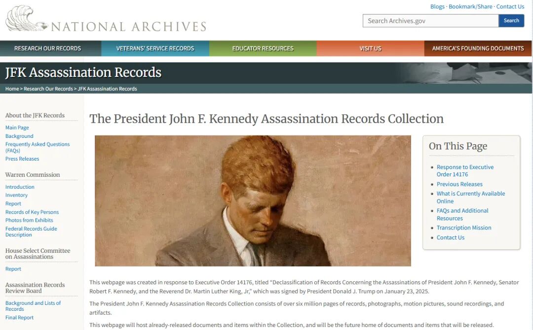 美国国家档案馆表示,已与联邦政府各机构协作,依照总统根据第14176号行政令作出的指示开展解密工作。自2025年3月18日起,相关档案可通过其官网页面在线查阅,也可前往马里兰州学院公园市的国家档案馆查阅实体副本或模拟介质版本。