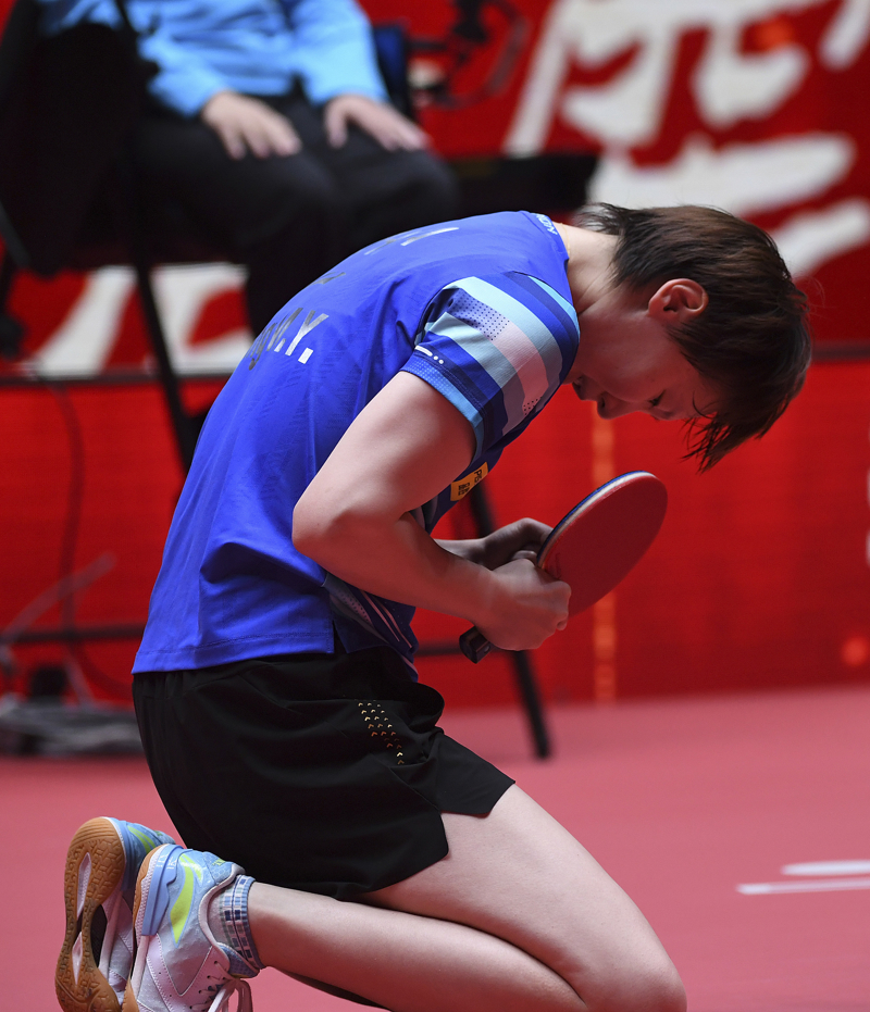 赢下最后1分,王曼昱跪地庆祝,这是一场多么来之不易的胜利。