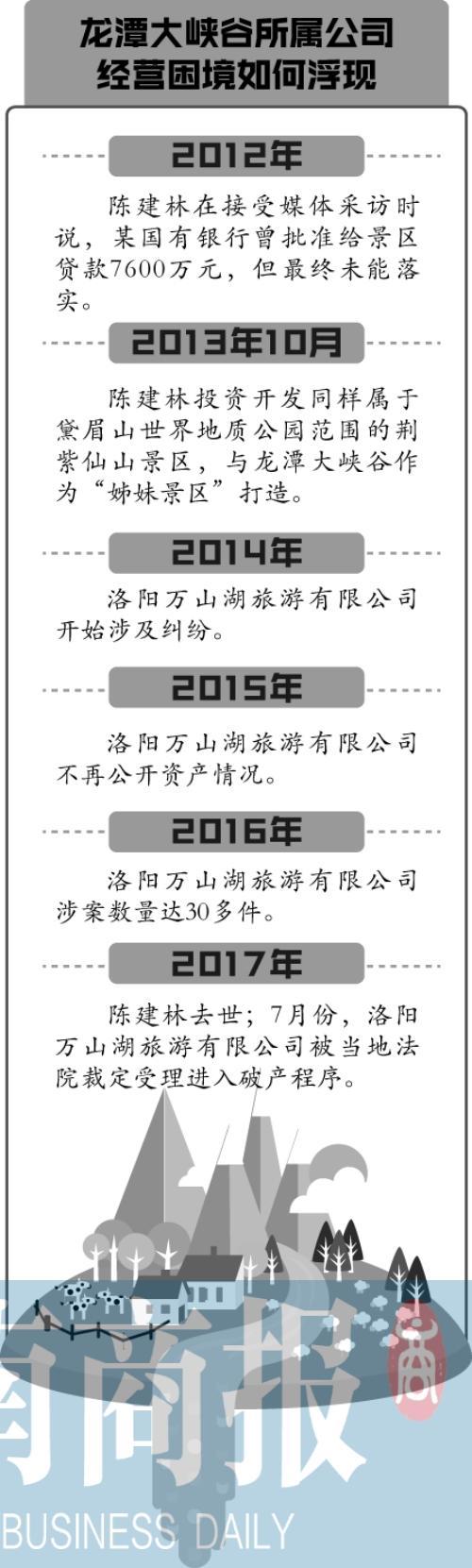 陈建林的去世,成为压倒骆驼的最后一根稻草。知情人士向河南商报记者透露,“2017年陈建林去世,直接导致了景区情况的恶化。人在的时候,欠的债也有个主,人一去世,债主都慌了。”